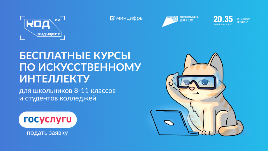 Программа "Код Будущего" - это бесплатные курсы программирования для школьников и студентов колледжей или техникумов Школьники 8-11 классов и студенты могут изучать программирование бесплатно. На Госуслугах стартовал прием заявок https://www.gosuslugi.ru/ai на 2025/2026 год. Спешите, количество мест ограничено!